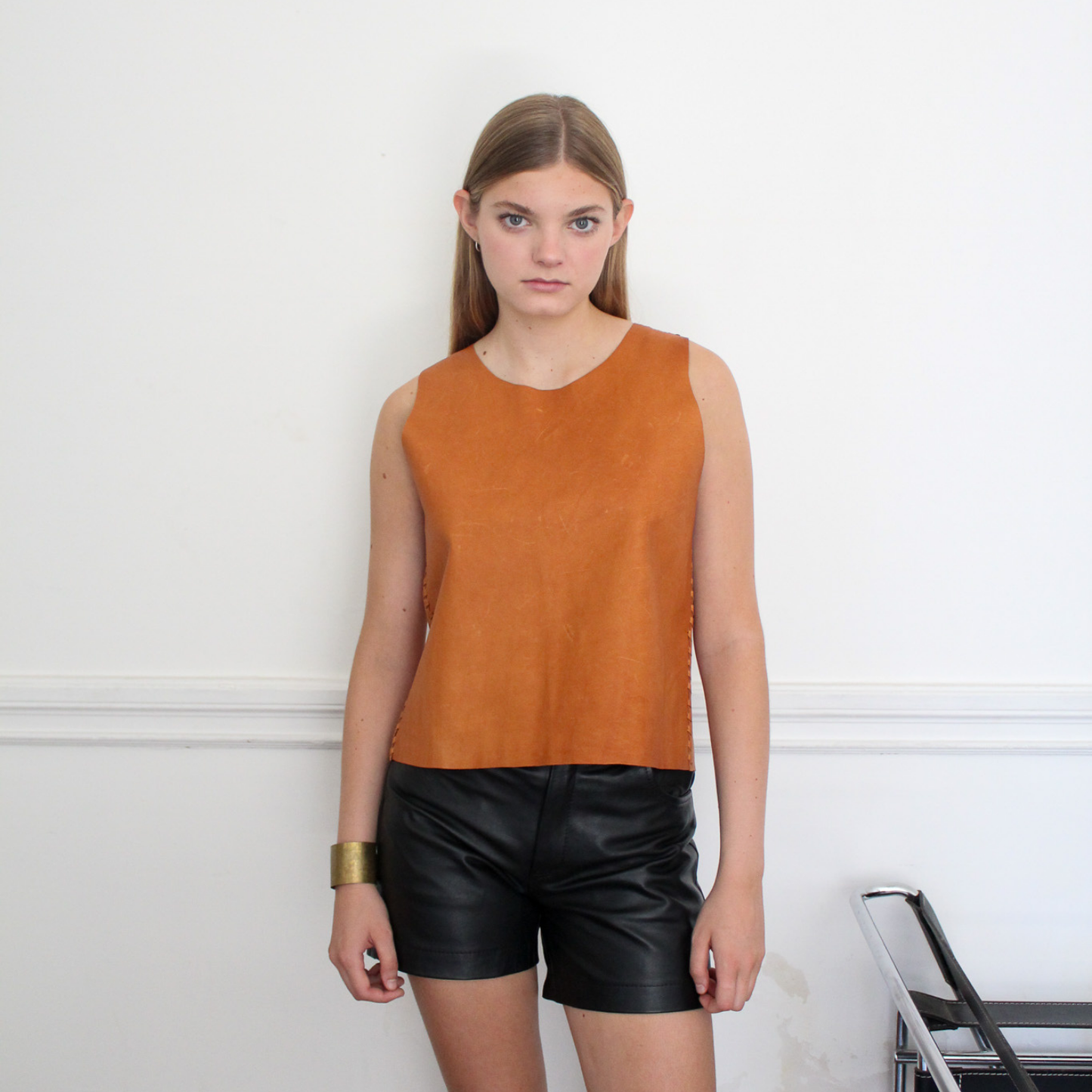 Argentine leather Top 100% handmade. Leather top with three self-tie ties and seams on the sides and shoulders. You can wear it with the ties facing forward or back, with or without something underneath!