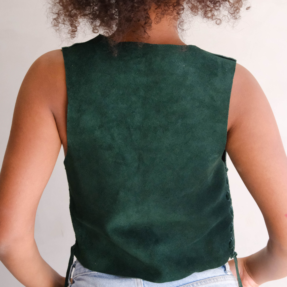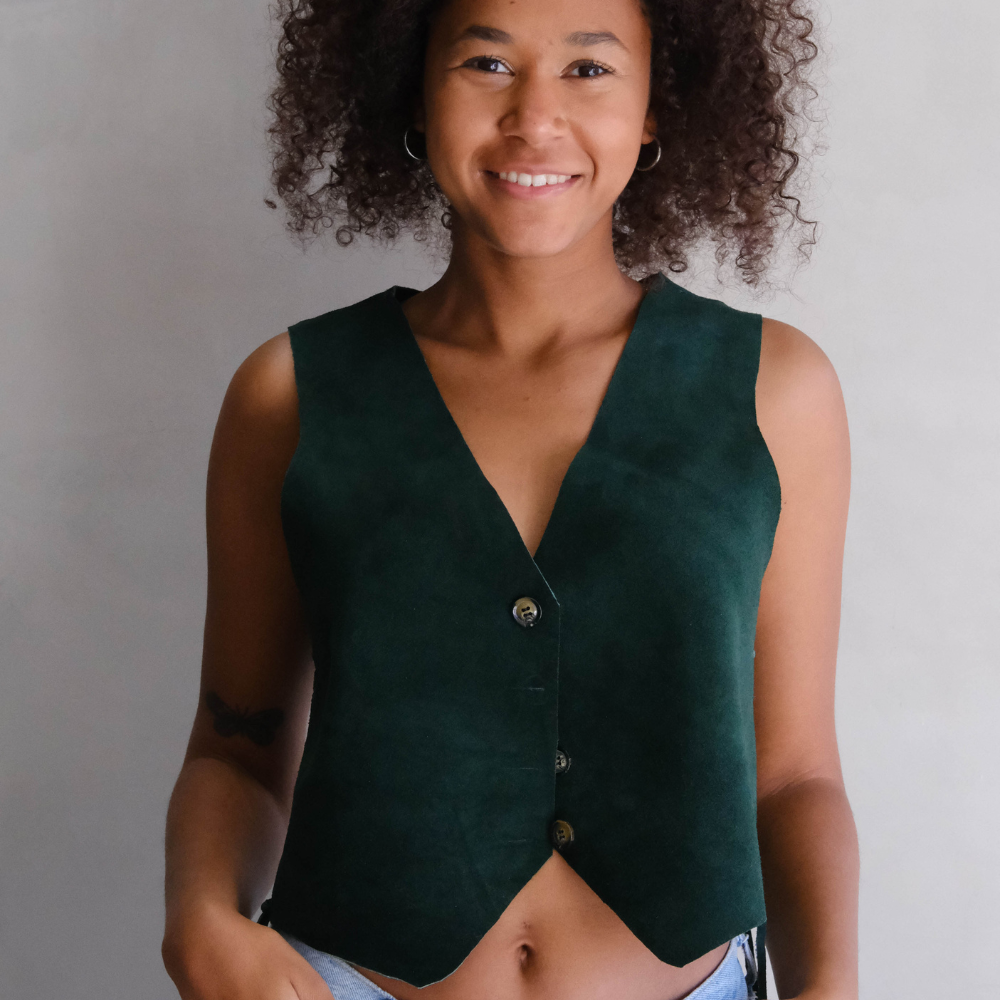 Argentine suede leather vest 100% handmade. With 4 tortoiseshell buttons on the front. You can wear it open or closed.
