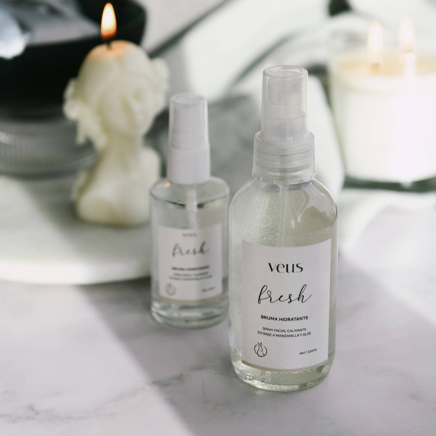 Mini size hidrating facial mist infused with aloe vera and camomille