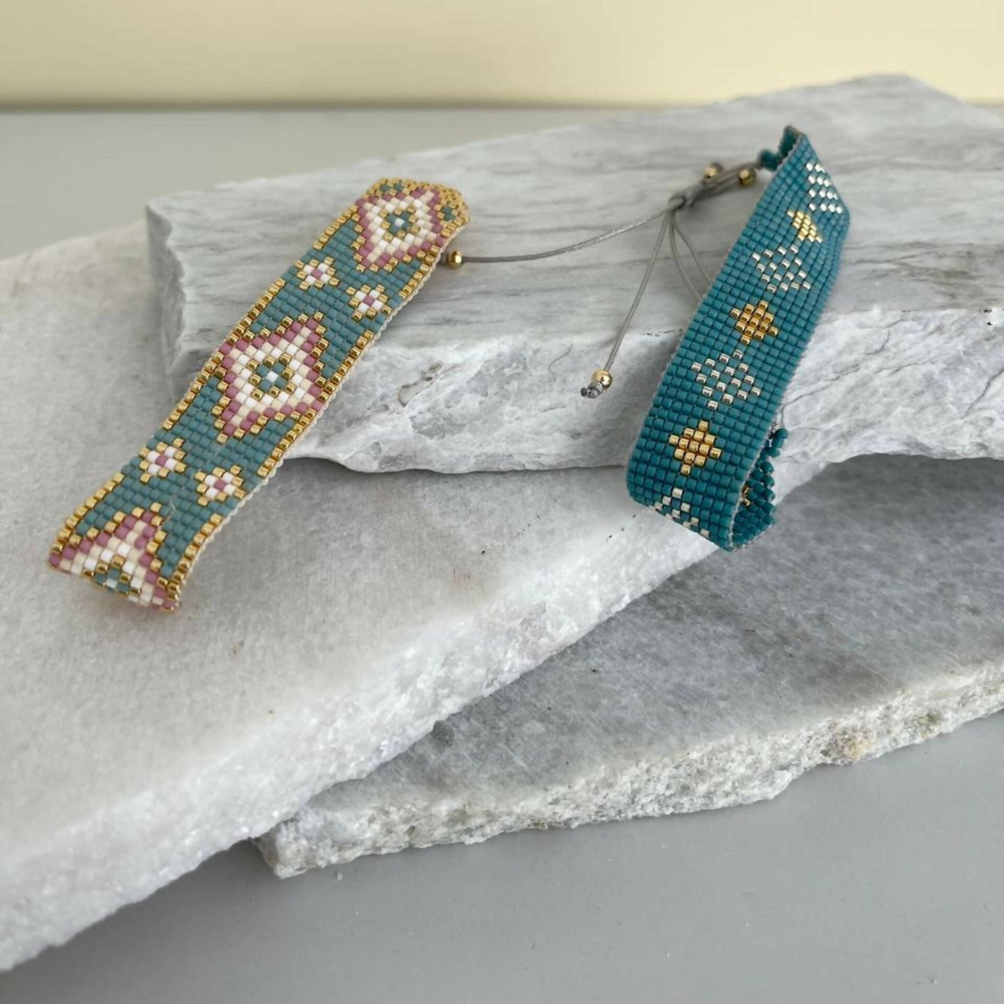 Hand woven bracelet by wixaritari artisans with japanese crystal