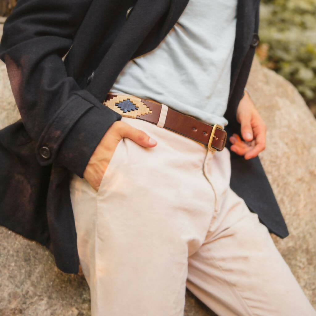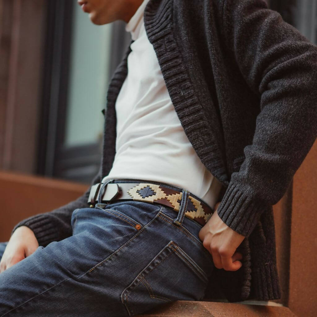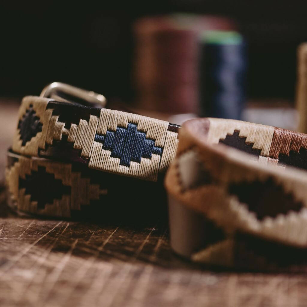 The Recoleta's blue and beige hues are inspired by the Buenos Aires neighborhood of Recoleta, known as one of the cultural hubs of the great city. This hand-embroidered belt is a classy choice for any occasion and a tribute to this historic neighborhood.