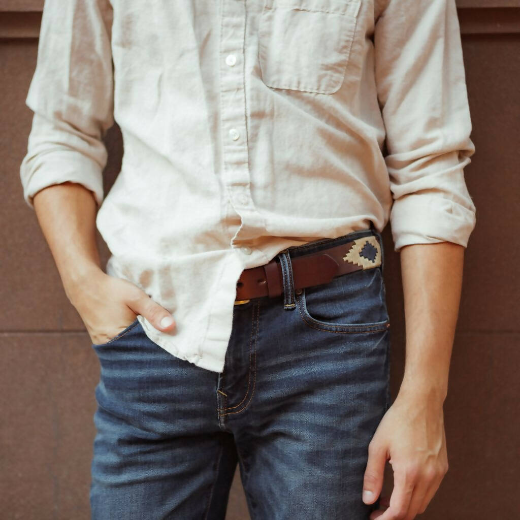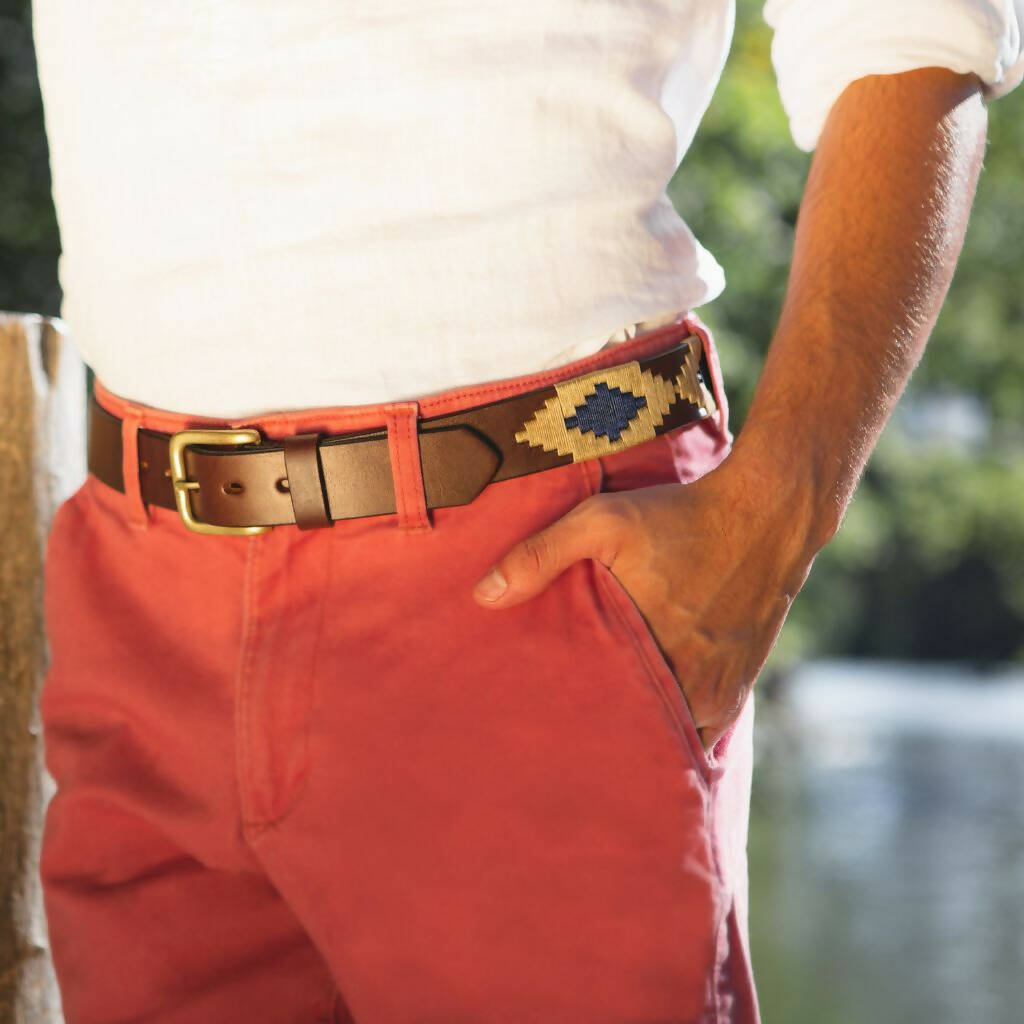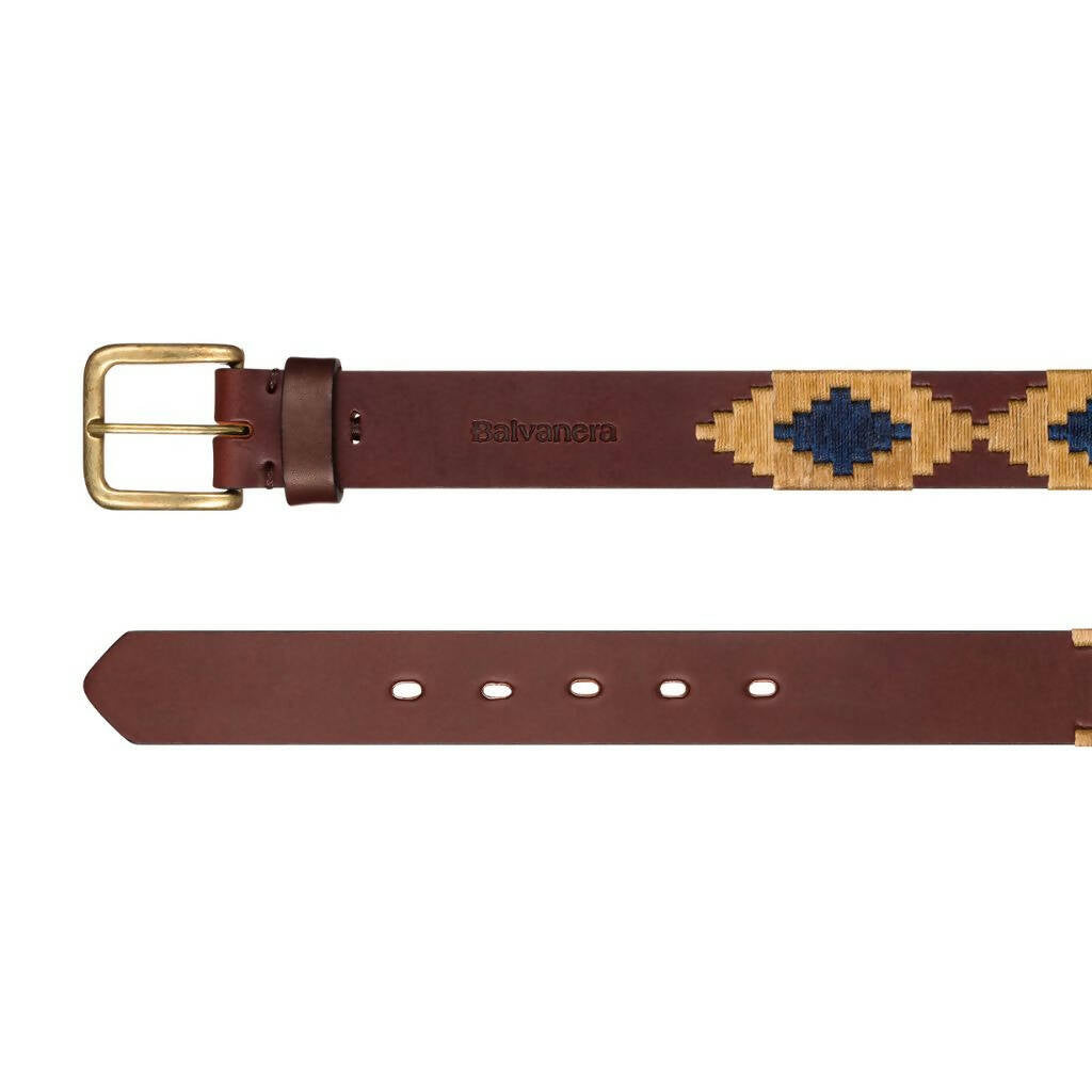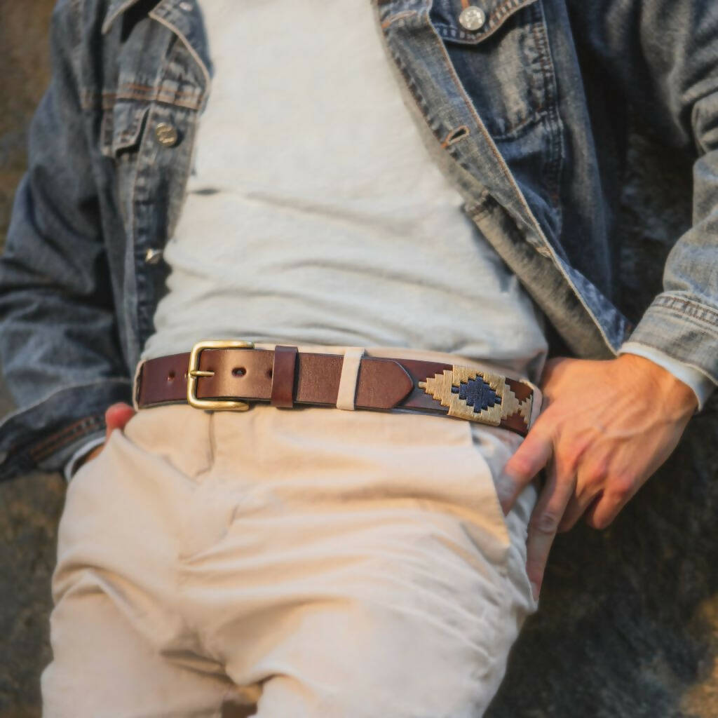 The Recoleta's blue and beige hues are inspired by the Buenos Aires neighborhood of Recoleta, known as one of the cultural hubs of the great city. This hand-embroidered belt is a classy choice for any occasion and a tribute to this historic neighborhood.