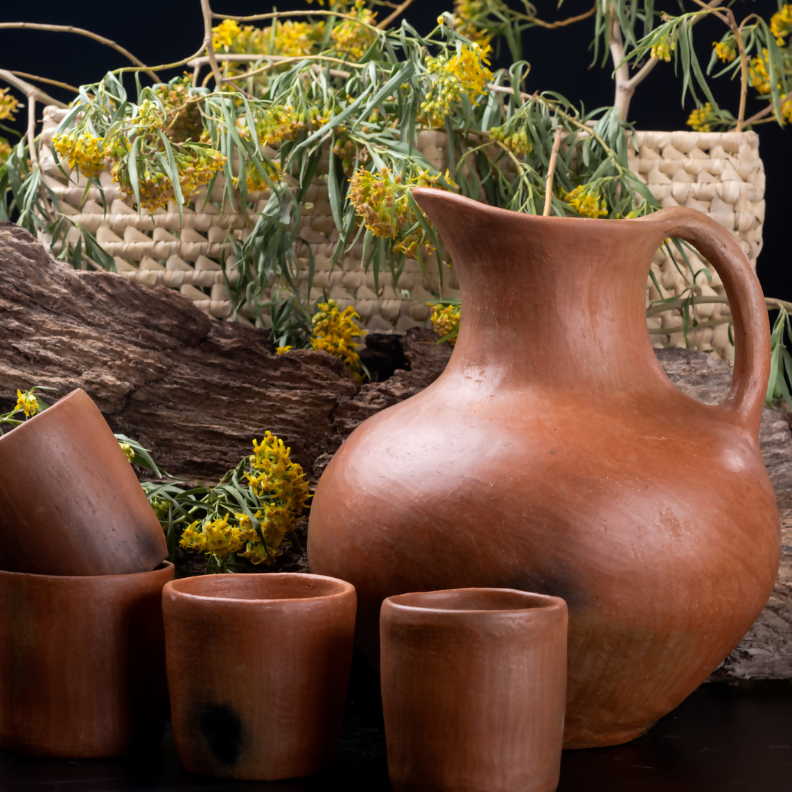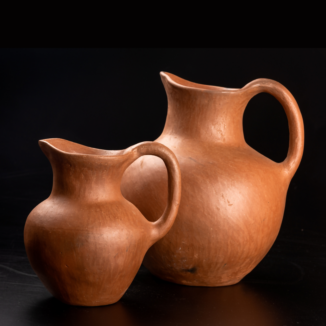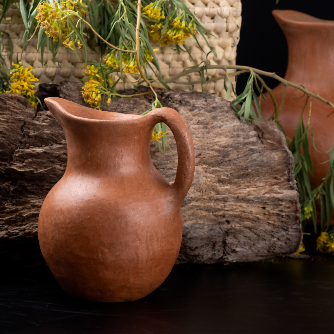 These lovely pitchers are handmade by Cristina and her family in the mountain community of Las Flores in Oaxaca. In accordance with generations of tradition, these artisans make their pitchers in three sizes: