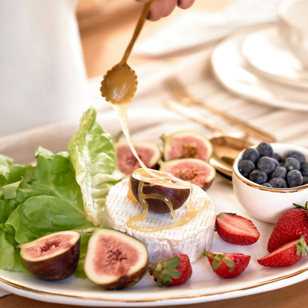 Regular price $32.50This collection gives an elegant touch to your table.The artisian ceramic shapes are glazed a soft white with a subtle handcrafted gold rims