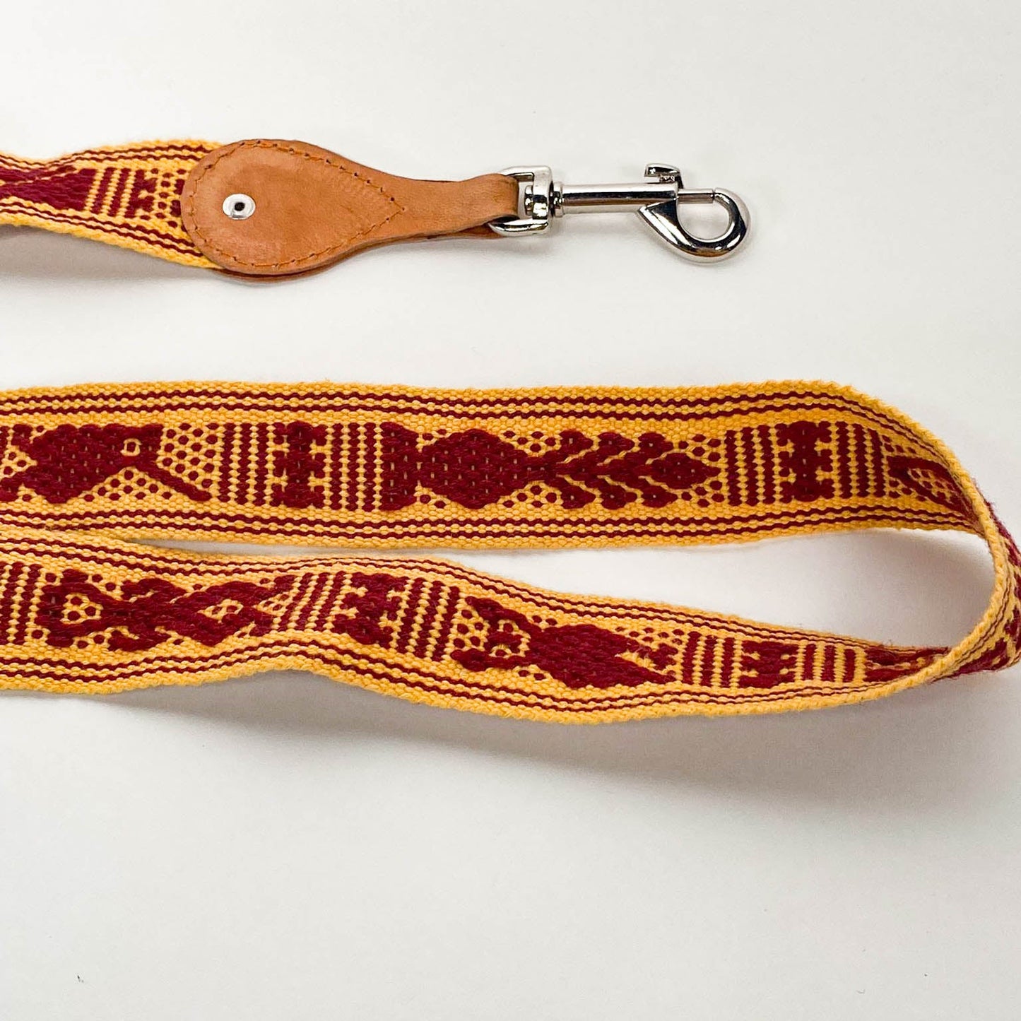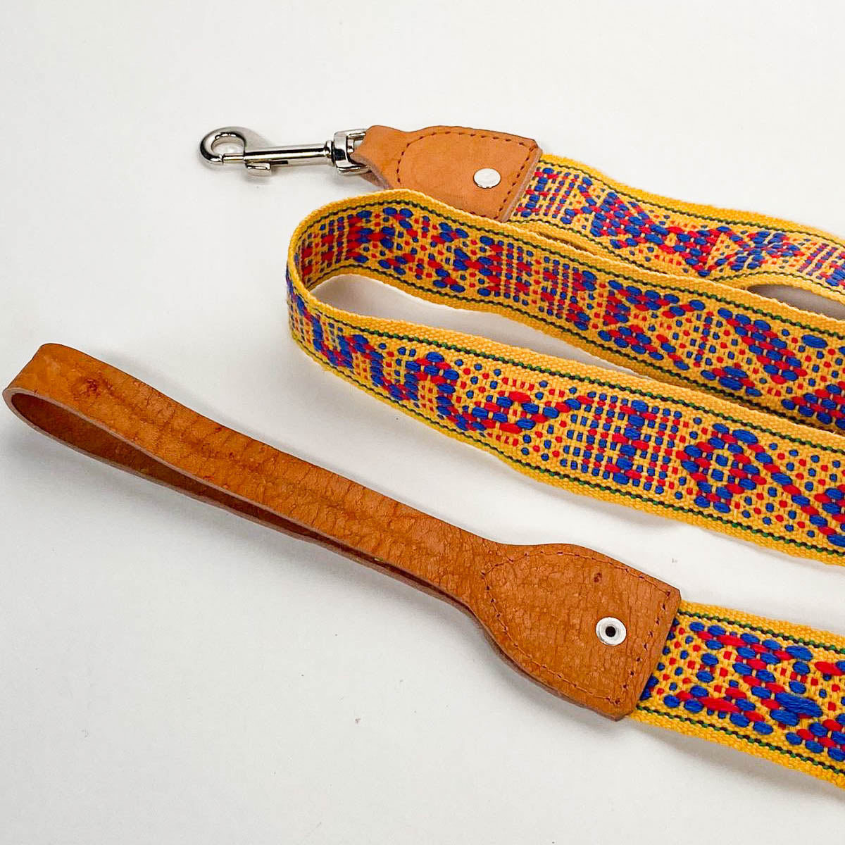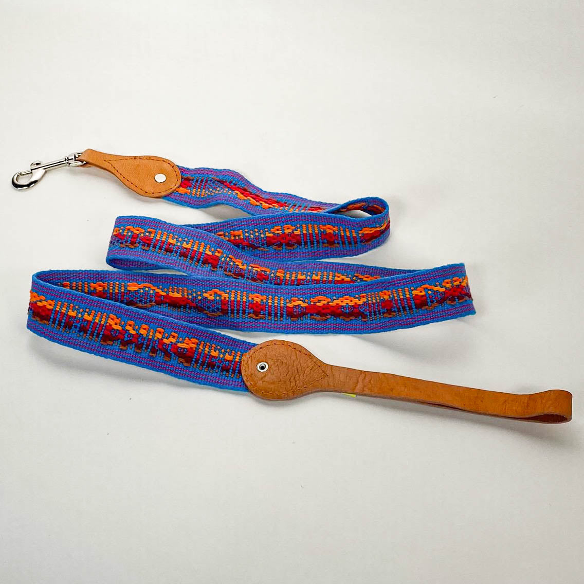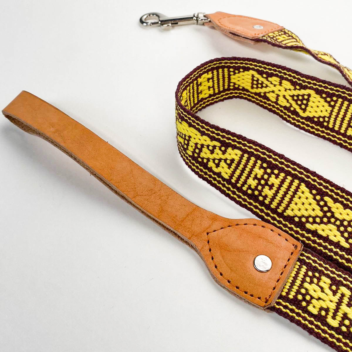These dog collars and leashes by Ina Chiisi were created in the Valle de Oaxaca, this technique is known as "telar de cintura" and its primary is cotton, which is dyed by natural extracts from plants like nopal, flowers, aloe vera; insects like the grana cochinilla, and fruits like the banana leaf, that the artisans extract and elaborate.