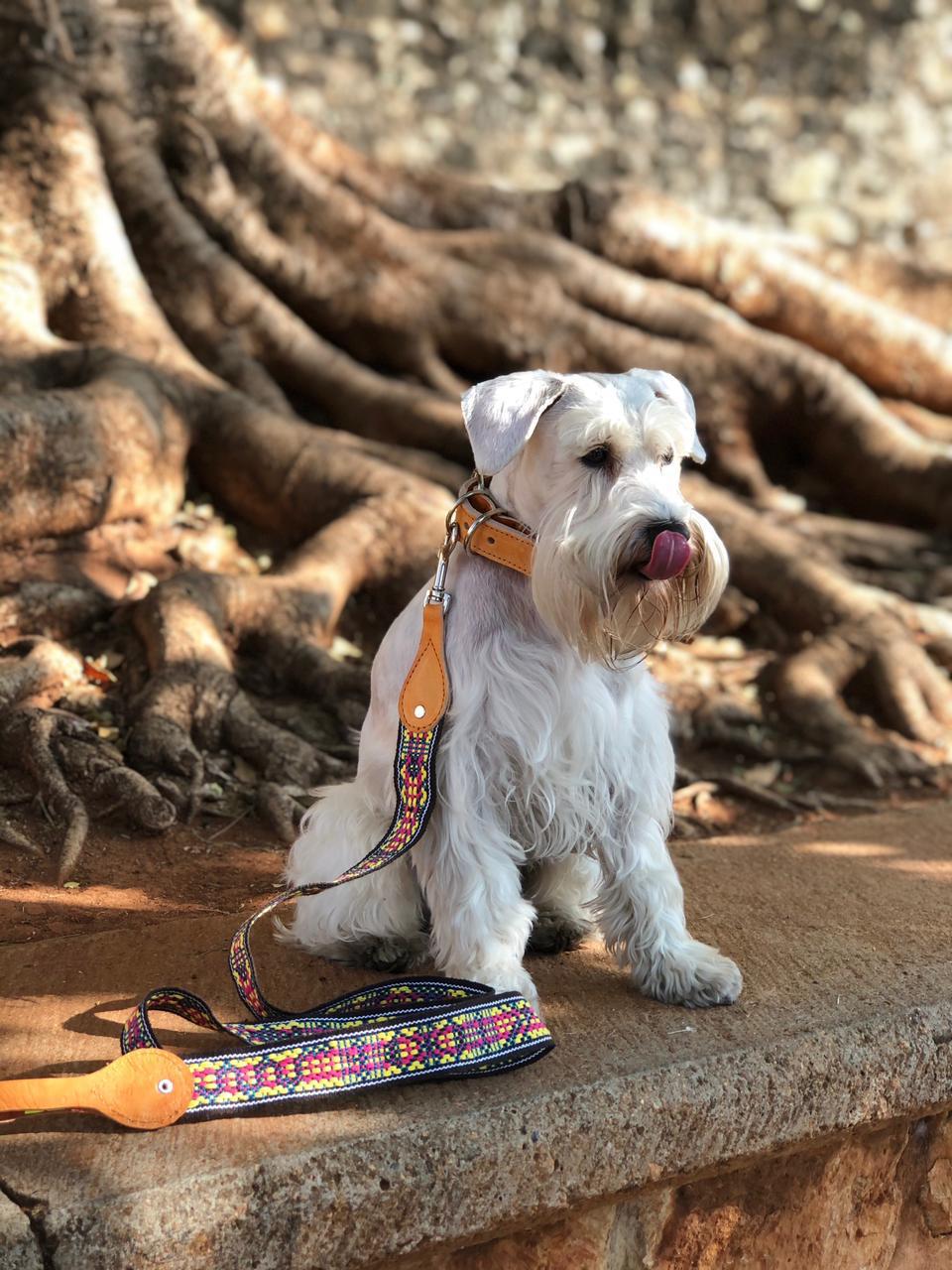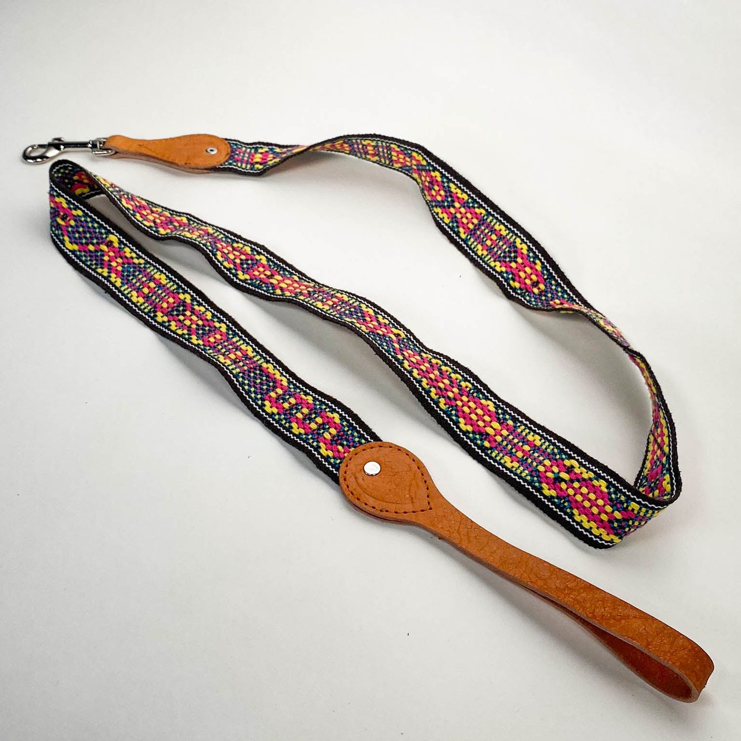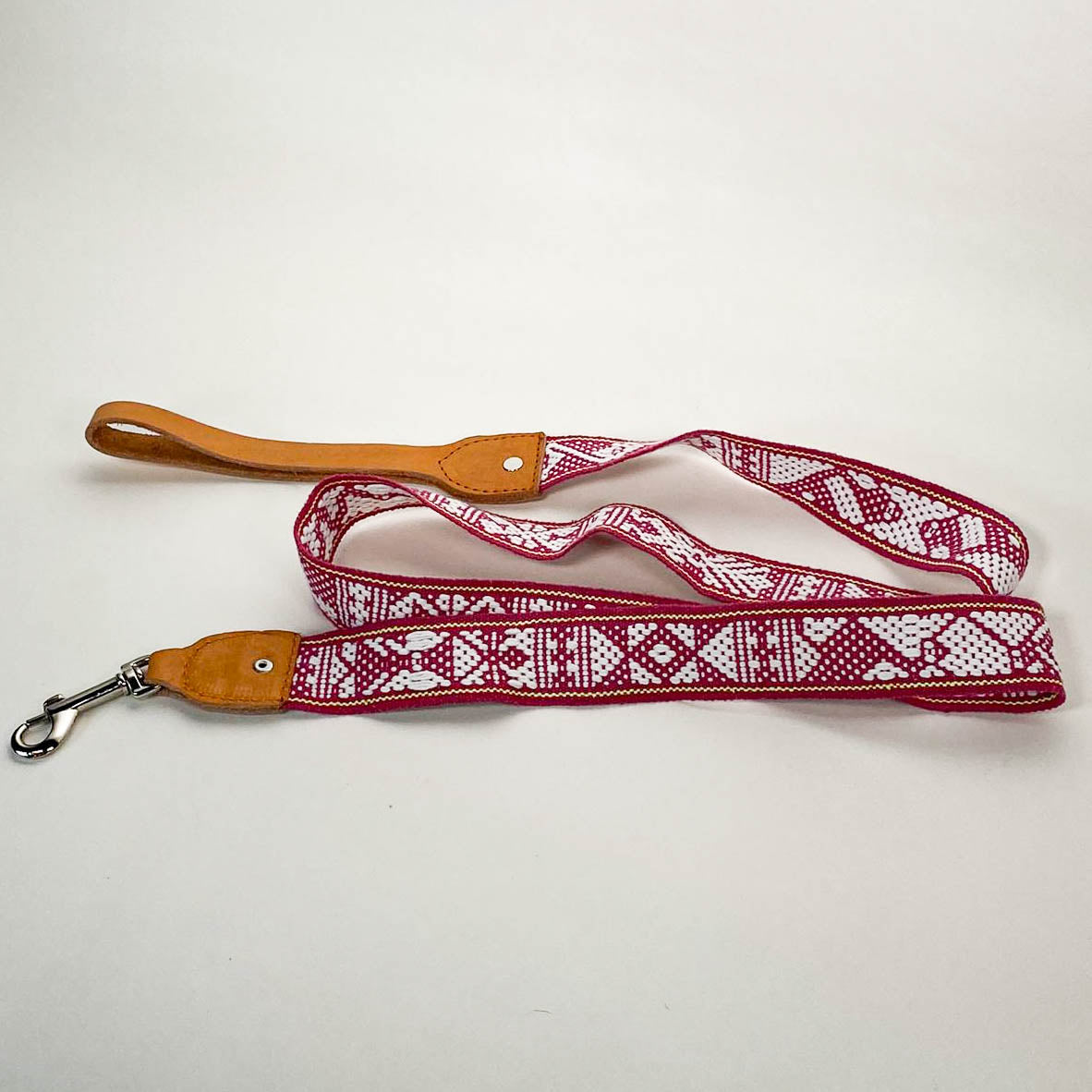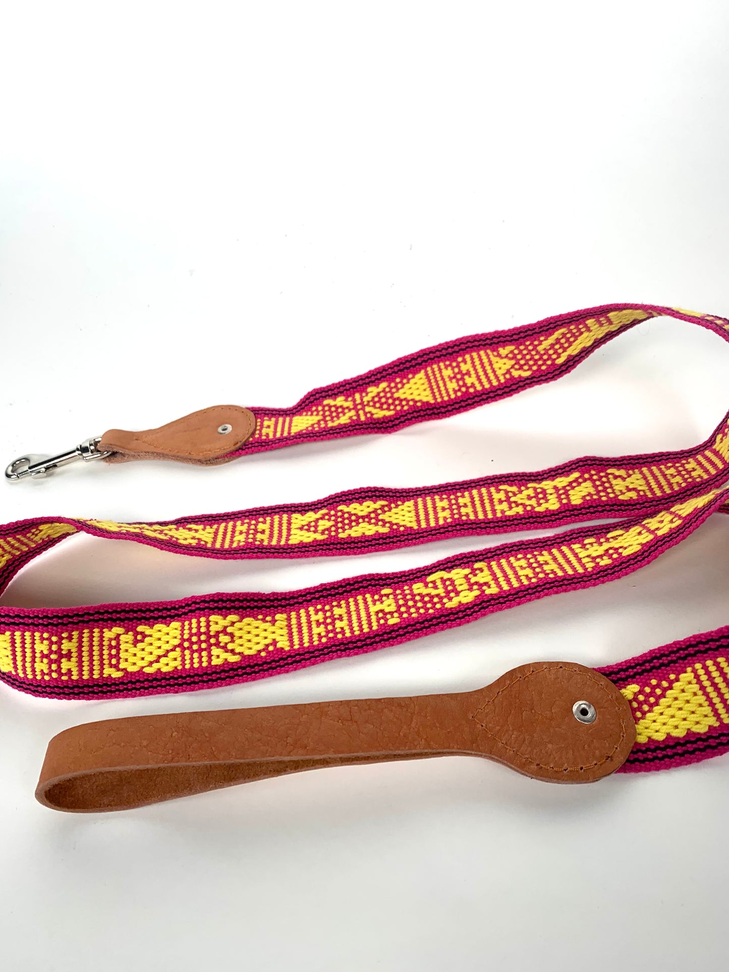 These dog collars and leashes by Ina Chiisi were created in the Valle de Oaxaca, this technique is known as "telar de cintura" and its primary is cotton, which is dyed by natural extracts from plants like nopal, flowers, aloe vera; insects like the grana cochinilla, and fruits like the banana leaf, that the artisans extract and elaborate.