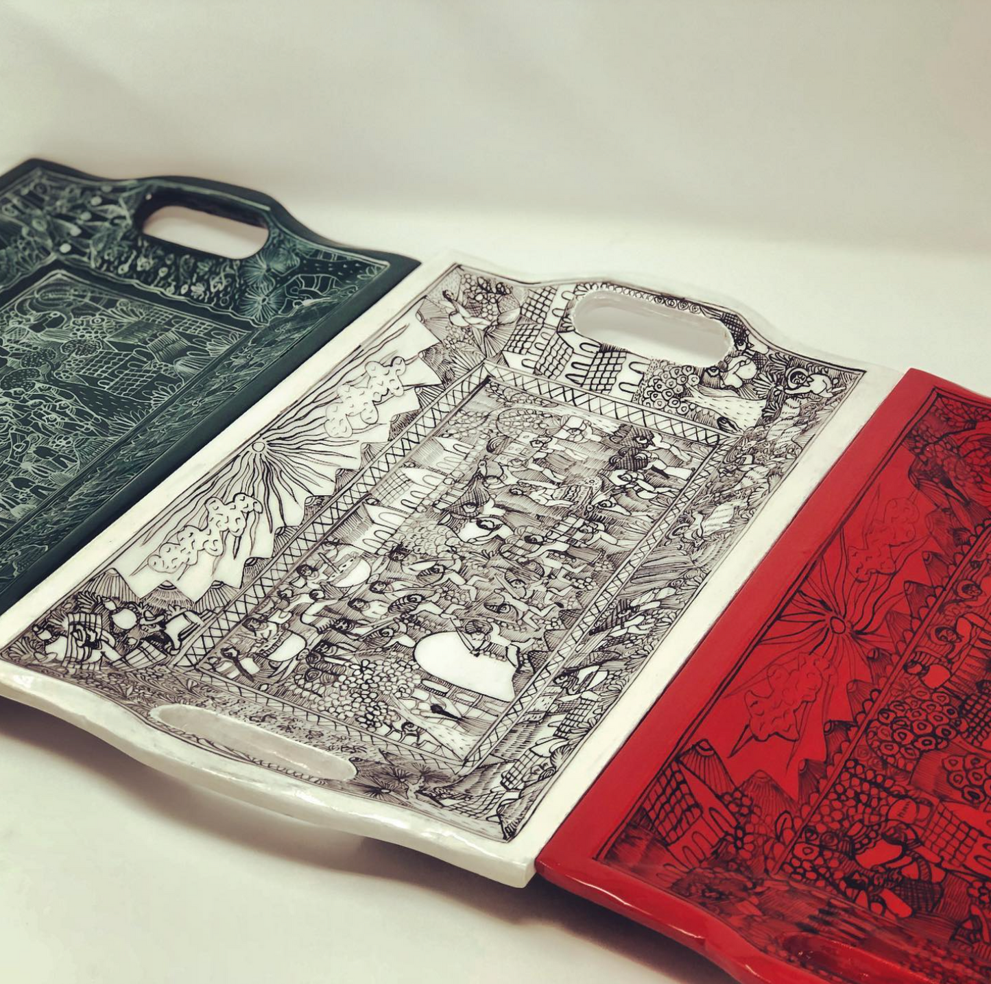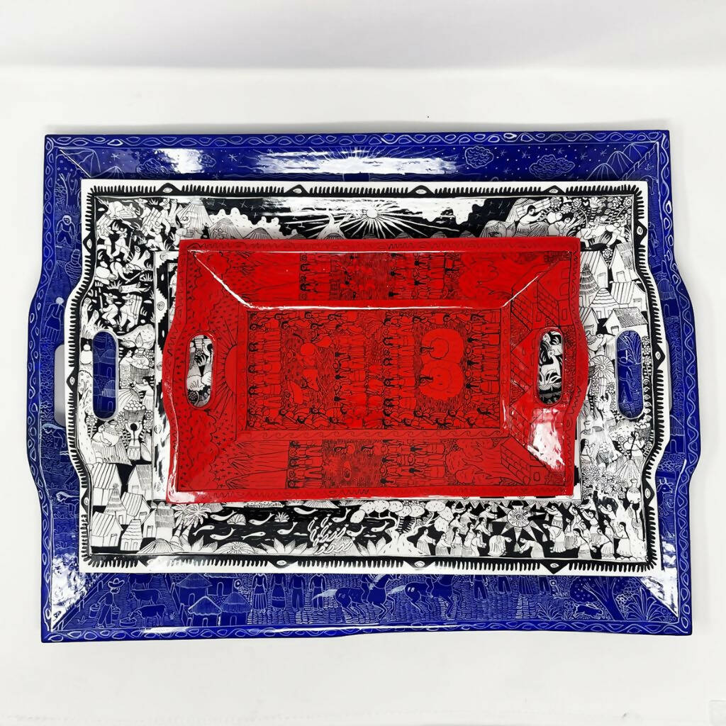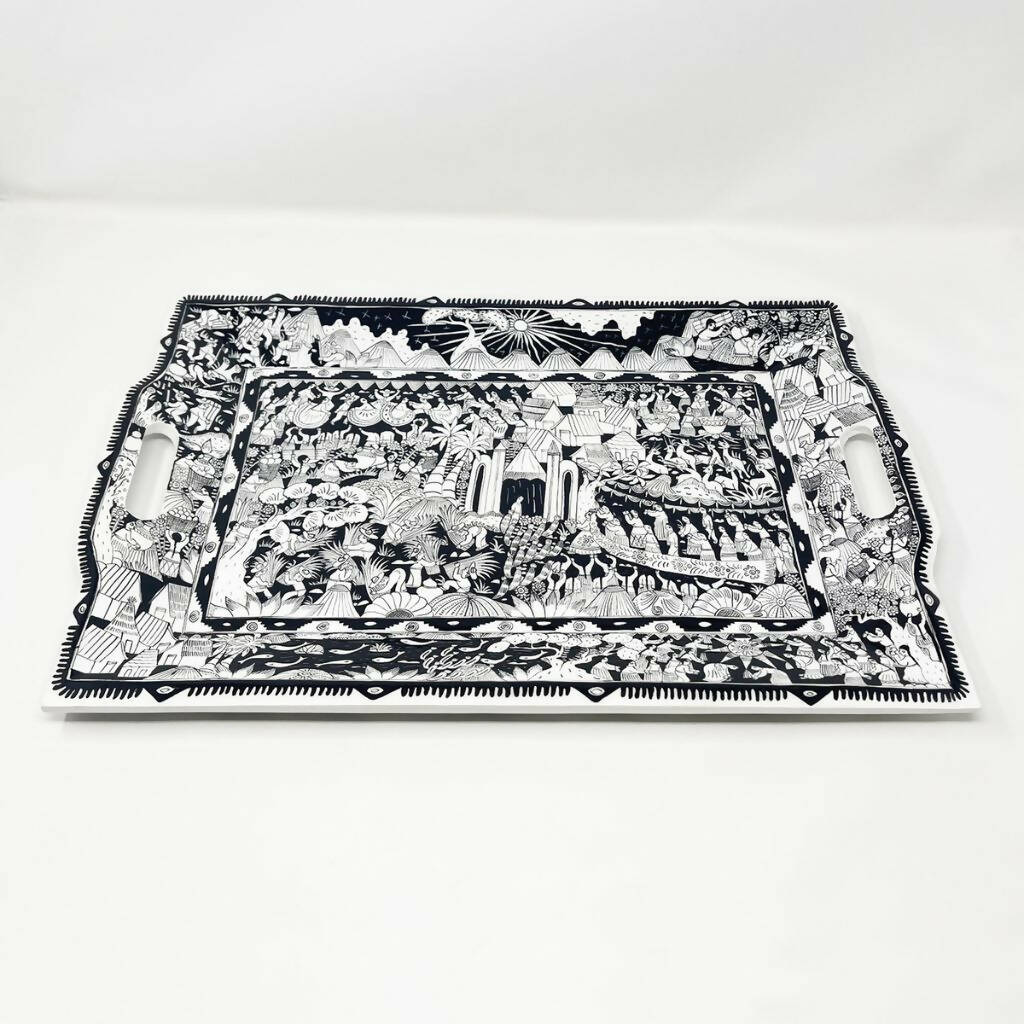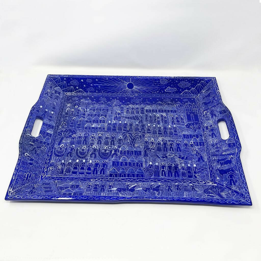 Handmade in Guerrero, unique tray where the artist through his painting tells the stories and traditions of his people