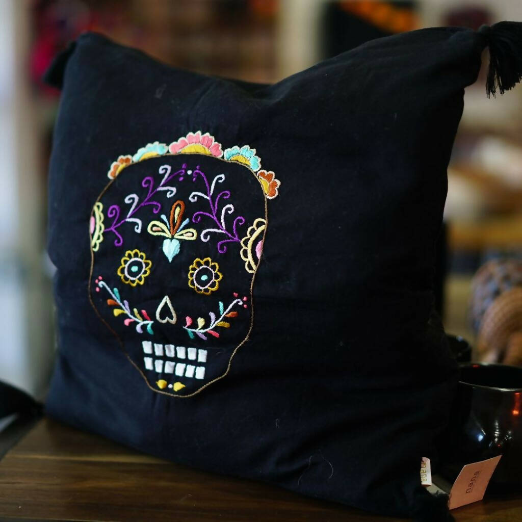 This hand-embroidered cushion is made with fine silk threads, everything from the design, reminiscent of the best Mexican traditions. The designer Itzel Zuñiga collaborates with artisan groups, in different communities in the state of Oaxaca, using and promoting artisan techniques, those pieces that they make in the Central Valleys of Oaxaca, supporting the work of talented women.