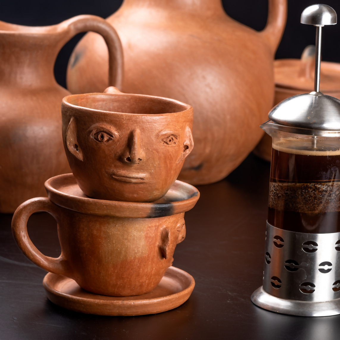 Each earthenware cup, handmade by sisters Cristina y Bibiana and their families in the highlands of Oaxaca, has its own personality—and yours is bound to become your favorite cup!